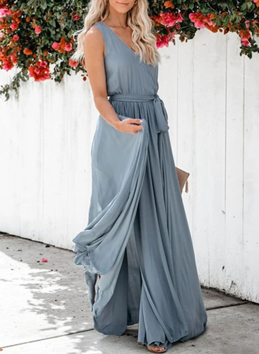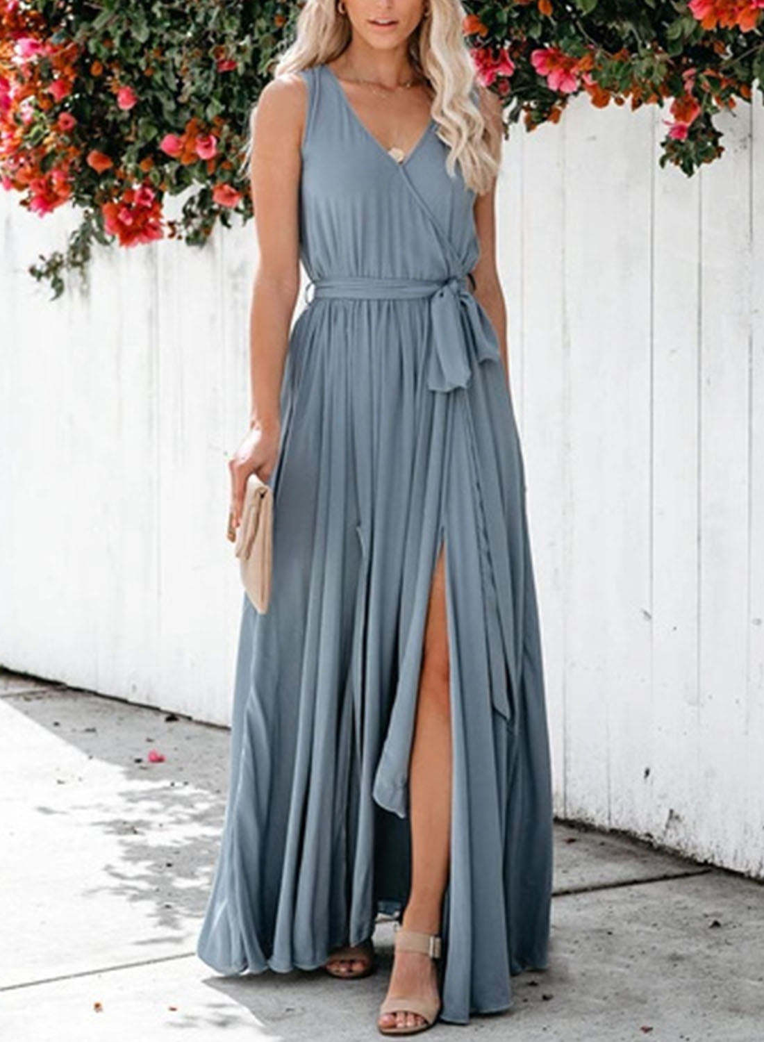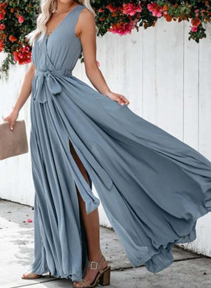Women's Dress Ruched Solid Split Knot Front Tank Maxi Dress