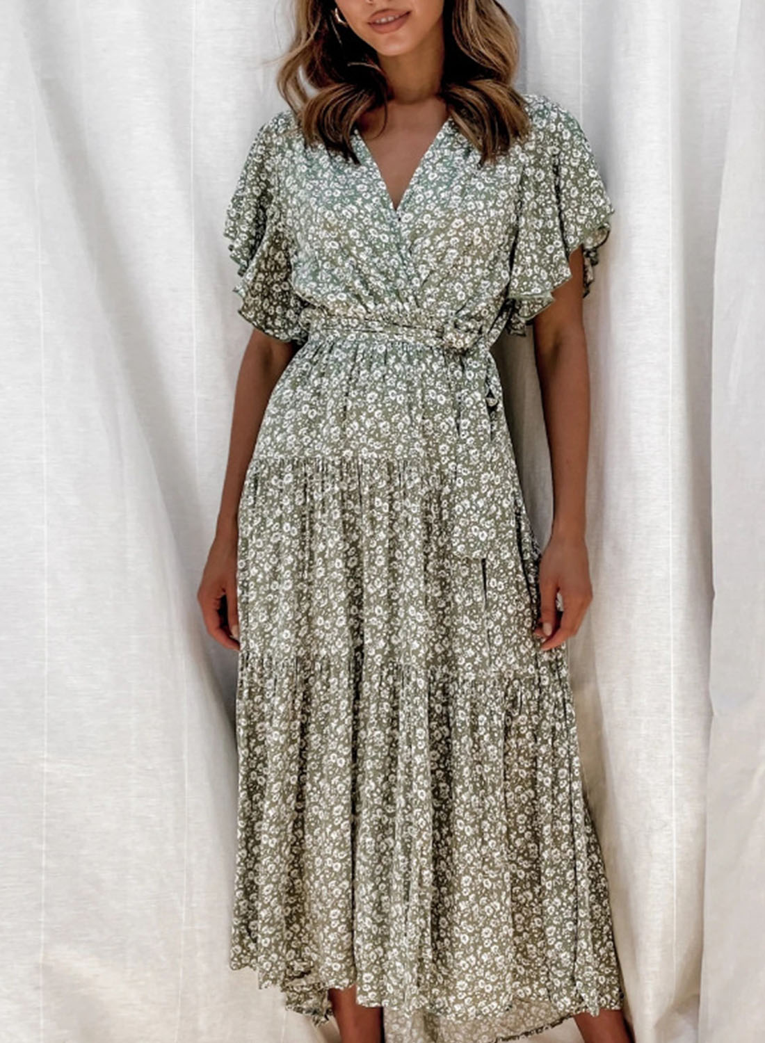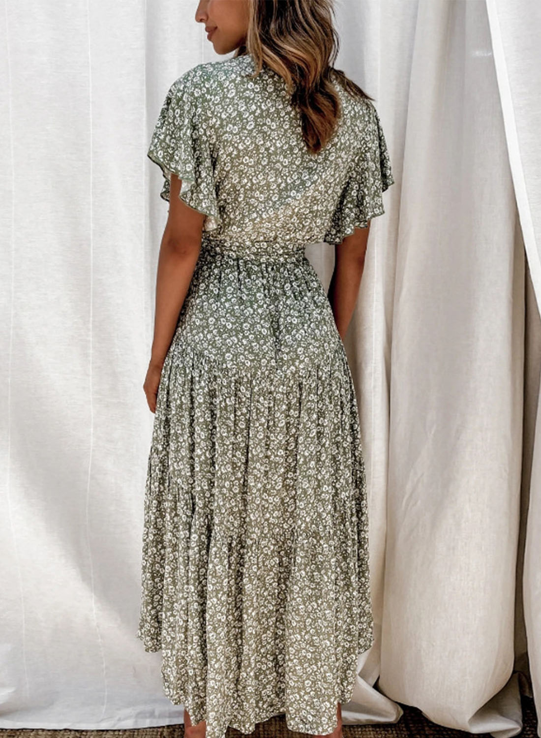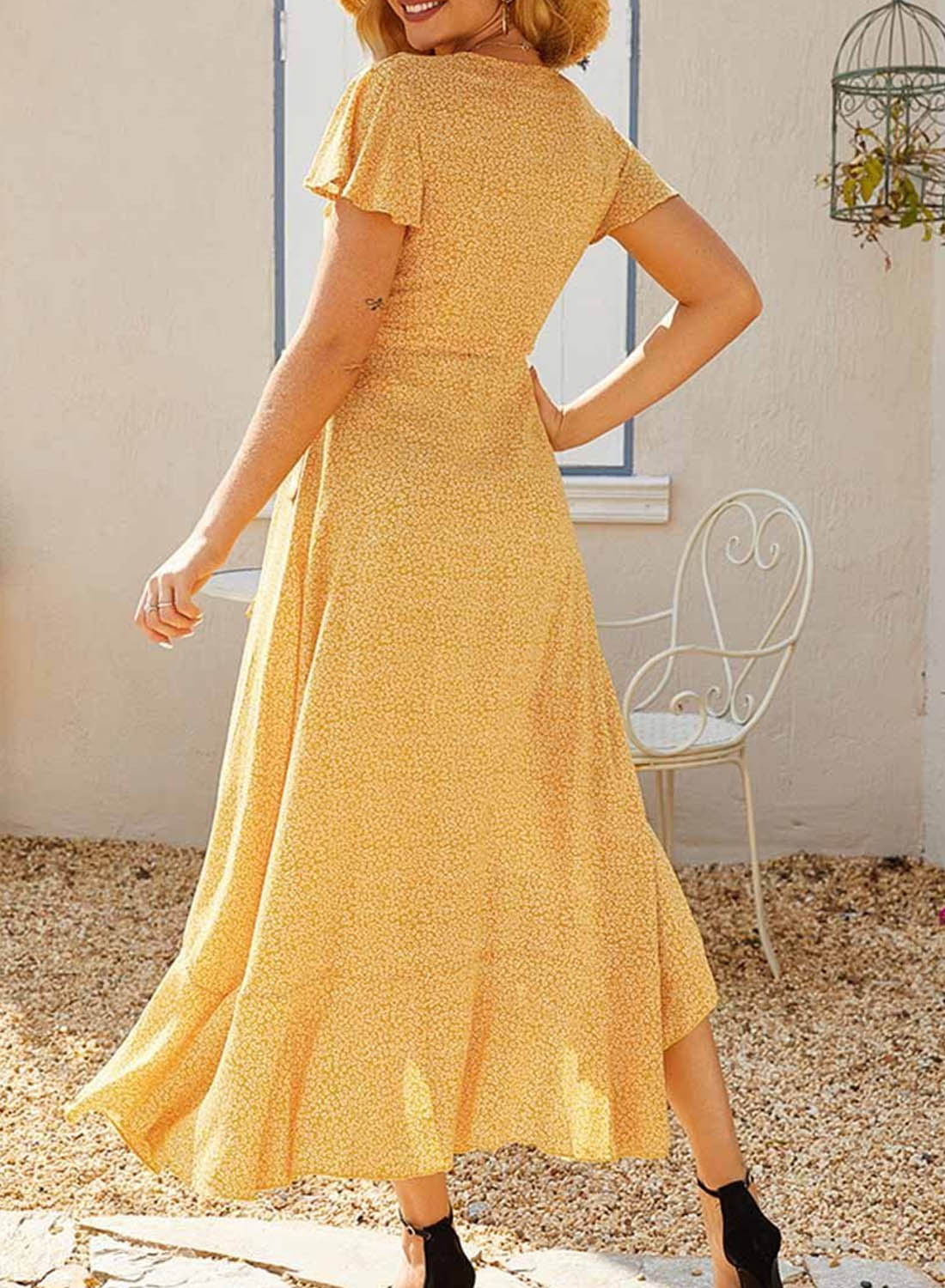 Women's Maxi Dresses Criss Cross Ruffle Flare Short Sleeve Dress