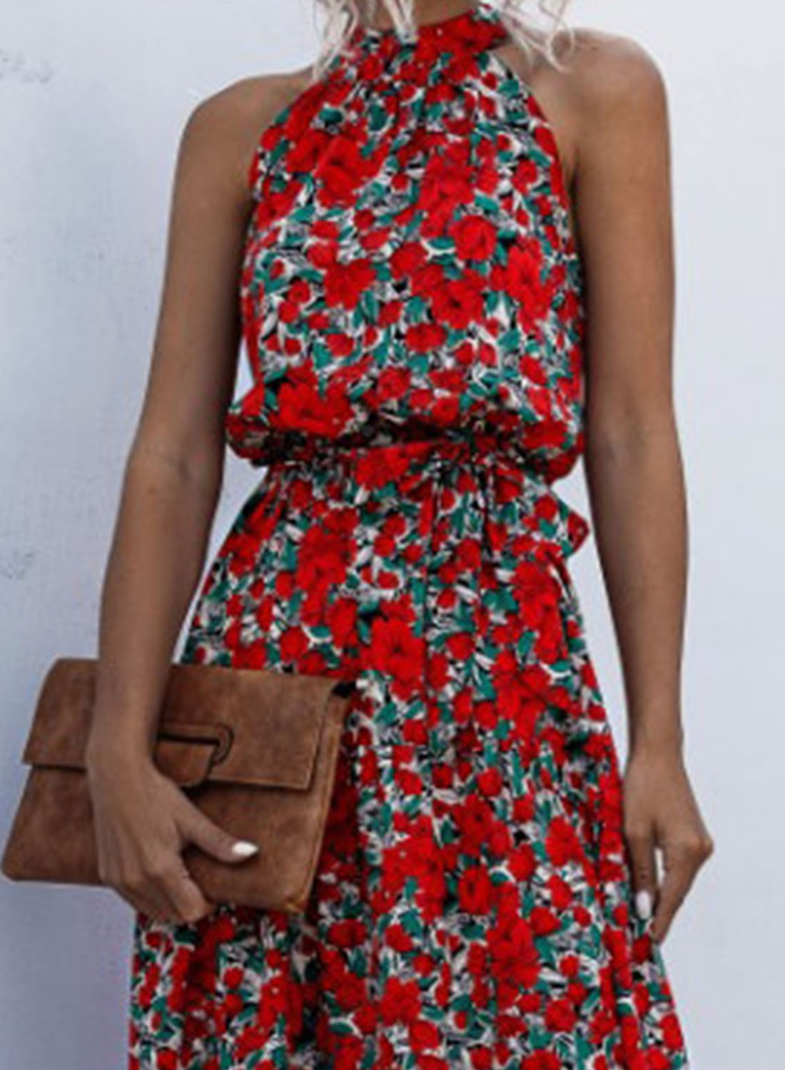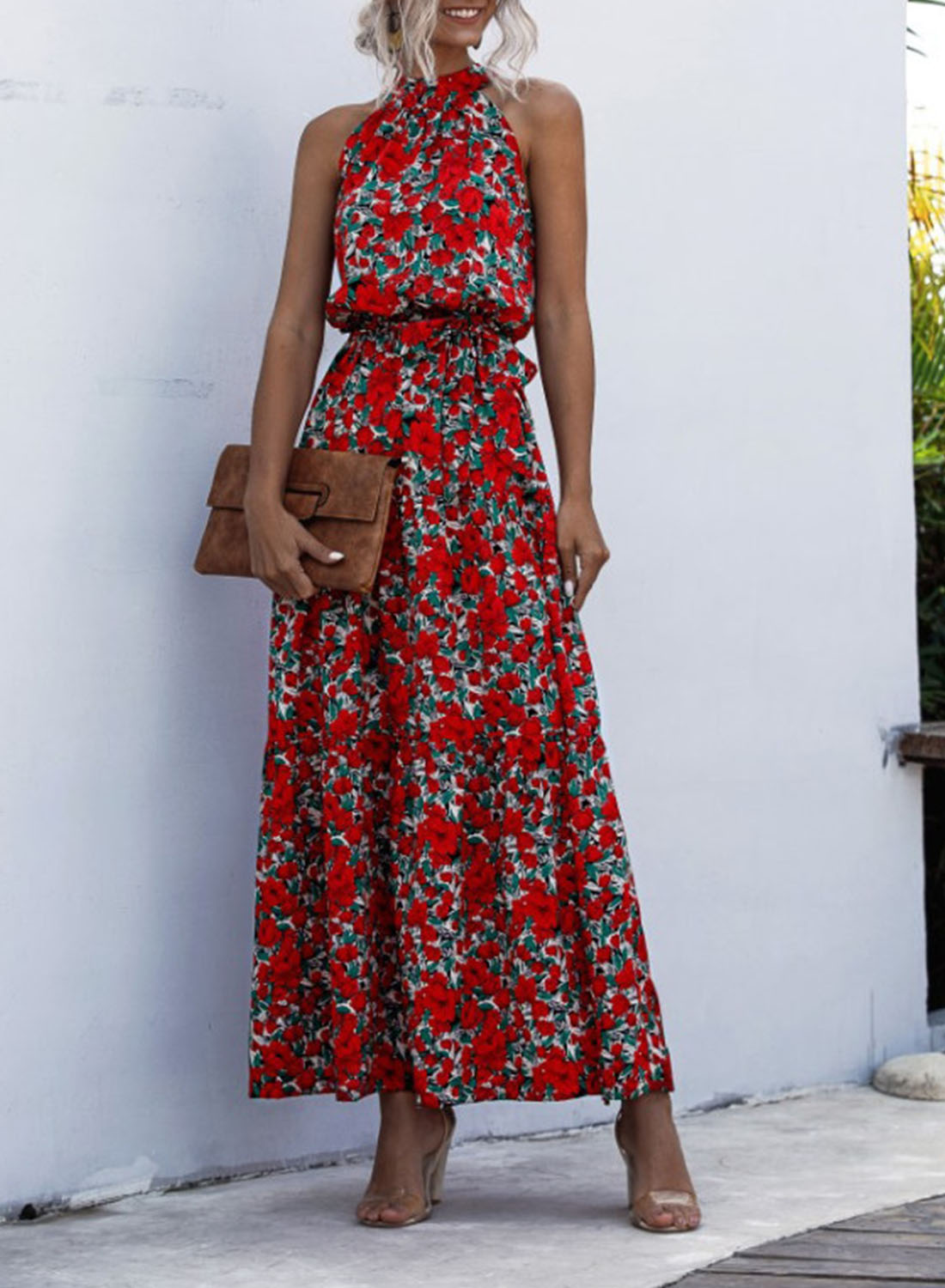 Women's Maxi Dresses Floral Sleeveless Cold Shoulder Boho Dress