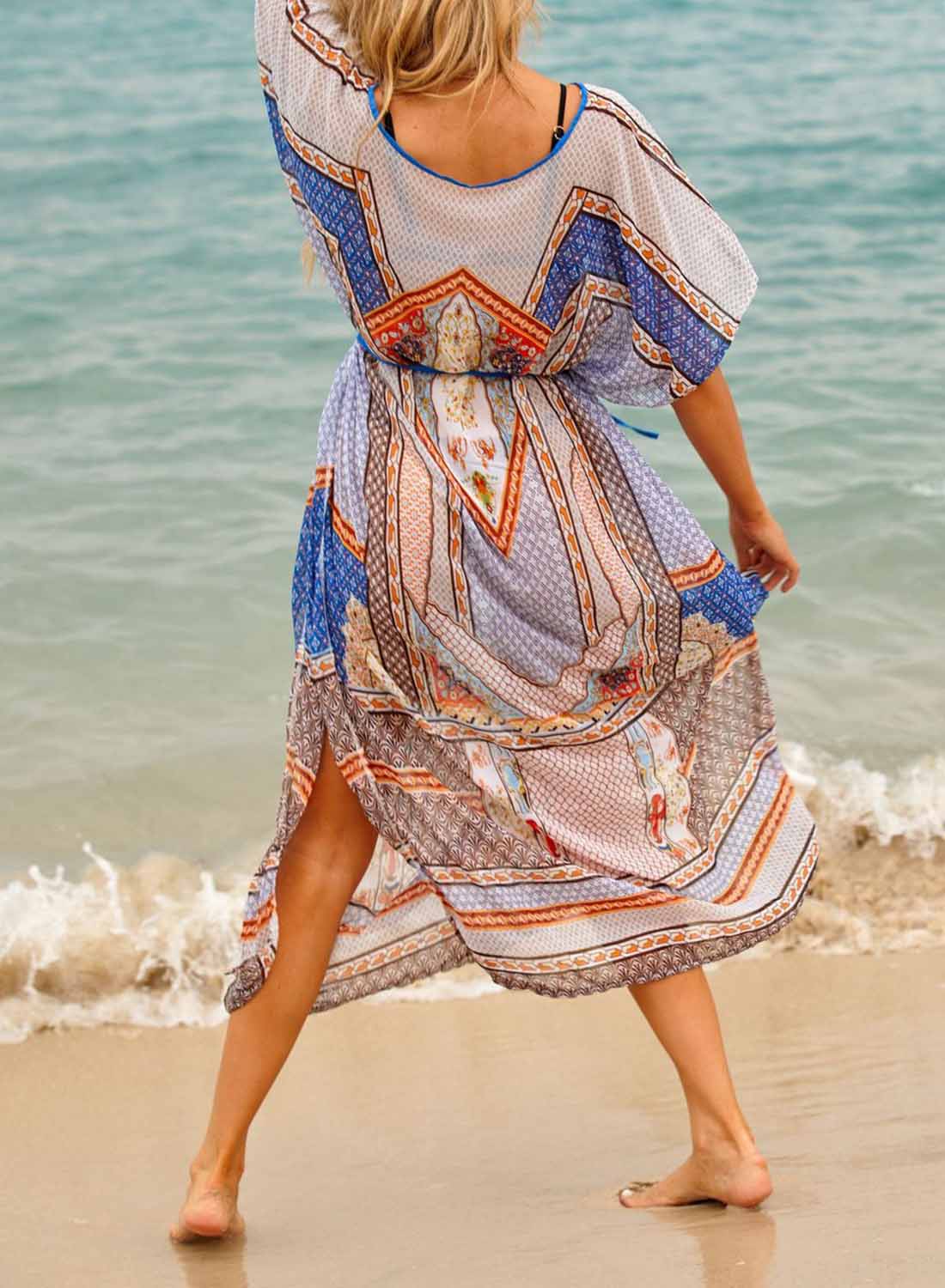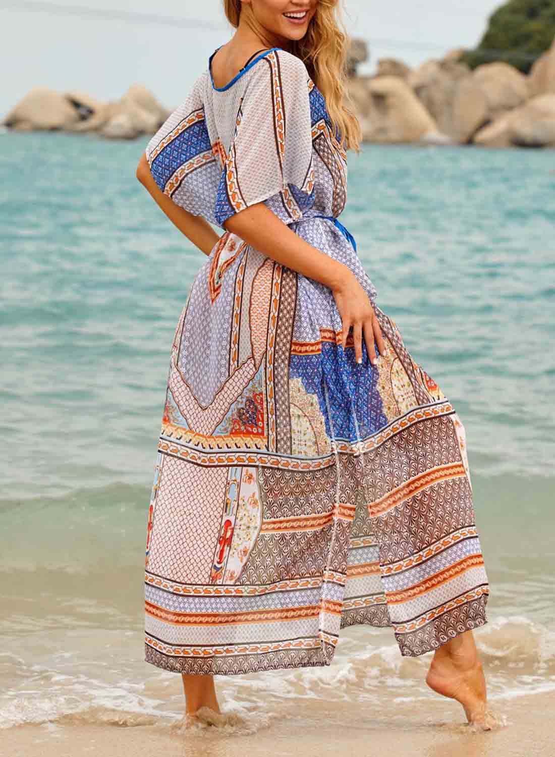 Women's Maxi Dress Geometric Color Block Round Neck Shift Belt Short Sleeve Summer Beach Maxi Dress