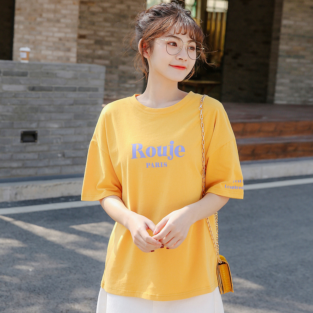 字母印花短袖女夏上衣2021年夏季新款纯色女式t恤女式打底衫