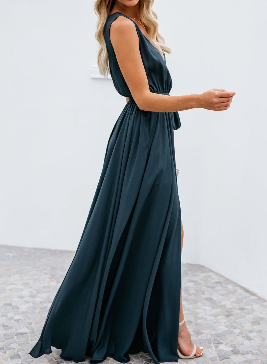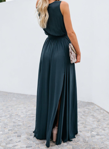 Women's Dress Ruched Solid Split Knot Front Maxi Dress