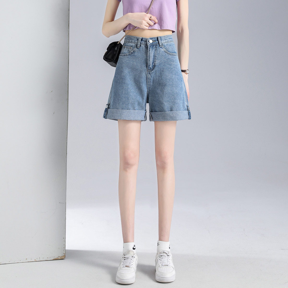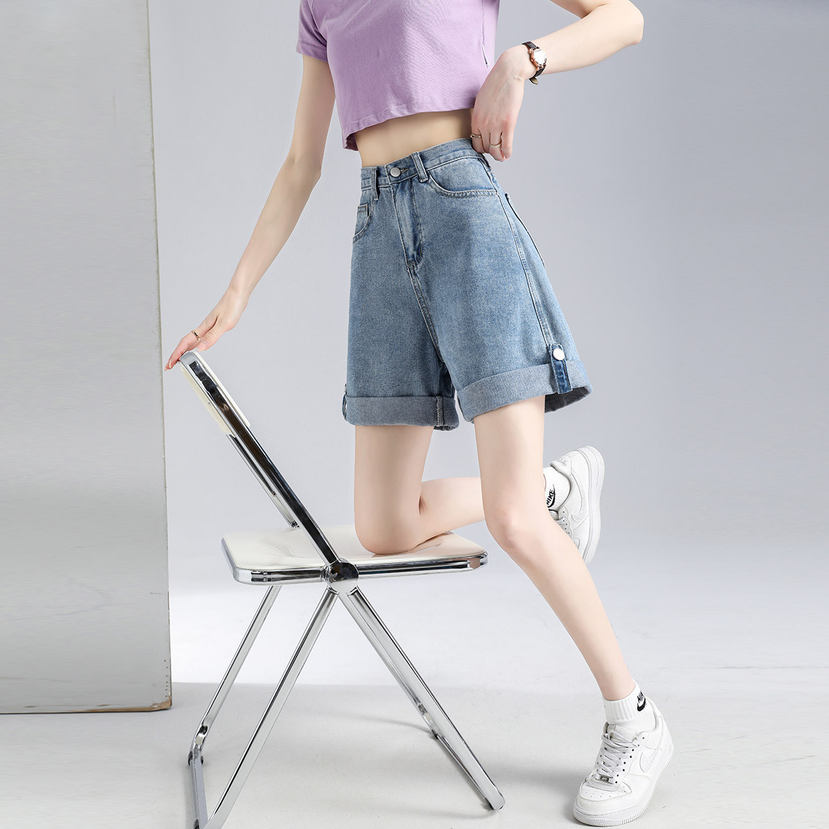牛仔短裤女夏季薄款宽松显瘦直筒牛仔裤a字五分裤阔腿休闲牛仔裤desc1