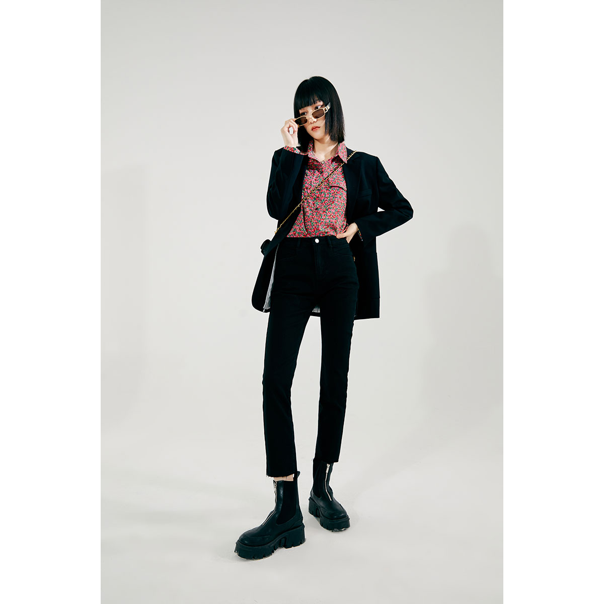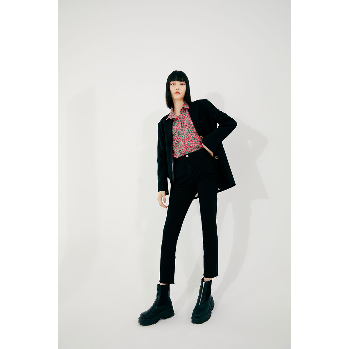高腰牛仔裤女修身2021夏装新款冰氧吧弹力九分烟管裤