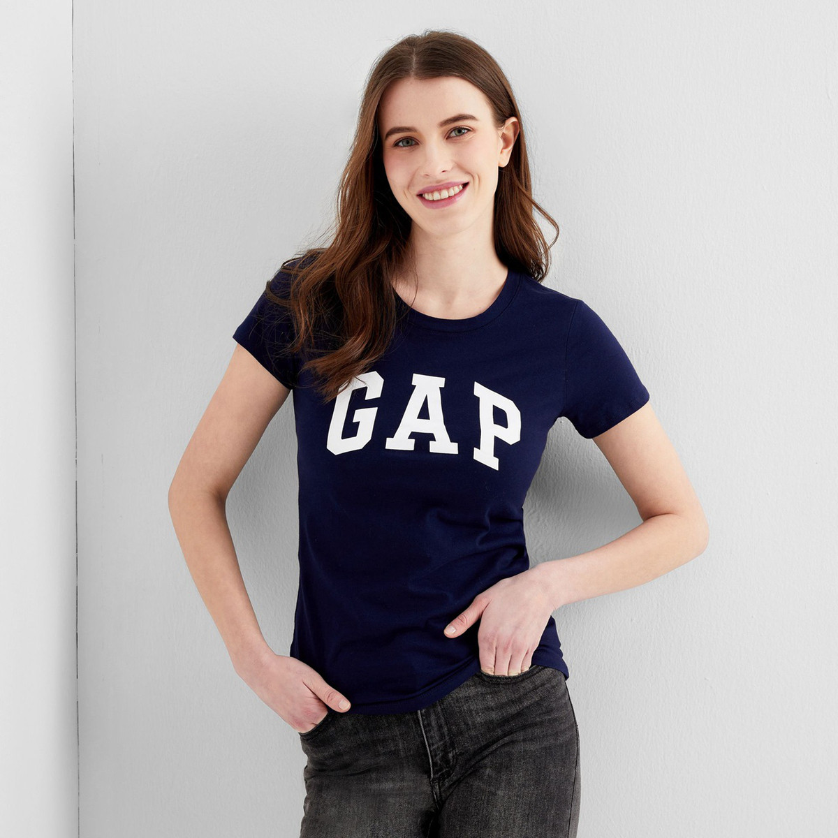 Gap女装纯棉透气圆领短袖T恤 时尚LOGO女士休闲内搭上衣