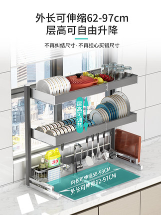 伸缩304不锈钢厨房水槽置物架放碗架碗筷沥水架洗碗池碗碟收纳架